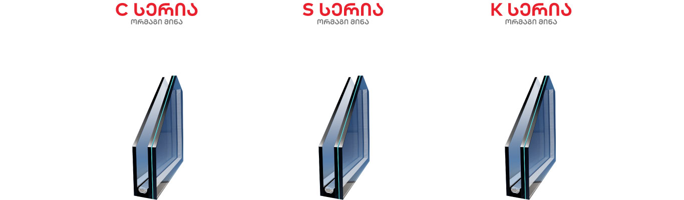 გთავაზობთ აღნიშნული კატეგორიის მინის სამ ტიპს, C, S და K სერიებს, რომლებიც ერთმანეთისაგან რამდენიმე მახასიათებლით განსხვავდებიან:
